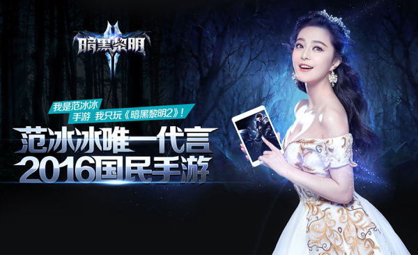 范冰冰2016唯一代言国民手游《暗黑黎明2》,“范冰冰”与“暗黑黎明”两大品牌强强联手,在游戏领域产生了唯一关联。《暗黑黎明2》倾力挑战目前ARPG手游产品的最高品质,五大群战玩法、主机级画质、实时跨服数据交互技术等,将再度为玩家开启国民级ARPG手游国度的大门!游戏以【跨服军团战】、【全服同地图阵营战】、【1000人公会战】、【魔兽级战场】、【团队遭遇战】五大PVP玩法为核心玩法,并辅以主机级画质、职业双天赋,实时语音、超强社交等辅助表现,带你进入手游战斗2.0时代!