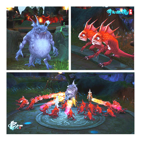 怪兽被大家合力击败后,居然奋力一脚踢翻大家,起身掳走帮花!少侠们可以兵分两路前往鱼怪藏身之处,拯救帮花!路途中还有诸多风险,众多鱼怪水妖将前来阻挠。不过,每一波怪物都有其弱点,或无力抵抗法术,或惧怕物理输出,少侠们需要找到他们的弱点全力出击!