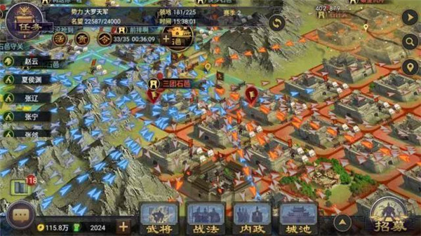 225万格静候征服的土地,构成了一张无缝大地图,任意玩家均可征服任意地块。游戏世界实时同步营造了你有我无的紧张感,为了生存和发展扩张,玩家必须寸土必争。对于有限资源的争夺是这个沙盘一切纷争的起源,无数同盟并立联合,为争夺一个城池、关卡连夜集结出兵,佯攻、试探、出击,在游戏中上演真实的战争。