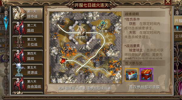 “开服七日战火连天”,游戏内每天都为大家准备了不同的对抗活动。喜欢PK对抗的勇士们千万不要错过哦!