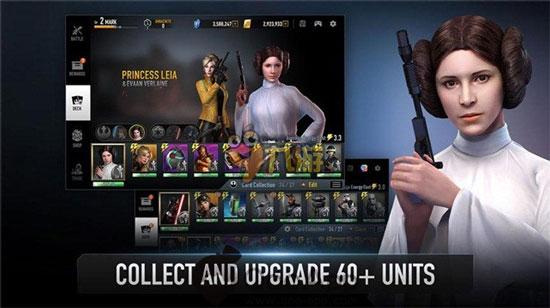 《星球大战:原力竞技场》中玩家将加入叛军或者帝国的阵营,选择部队成员并指挥他们进行战斗。而每次战斗之后都可以获得不同的人物卡片,用来召唤具备独特技能和攻击力的角色,从而组建仅属于自己的部队。根据玩家战斗结果还讲会为玩家进行排行,进入排行榜的还可以获得奖励、特殊角色以及附加奖励。