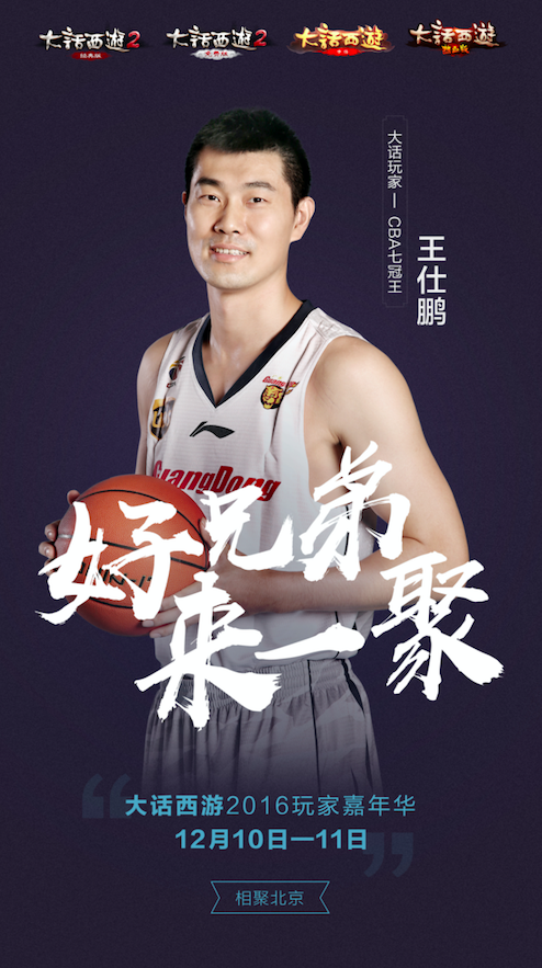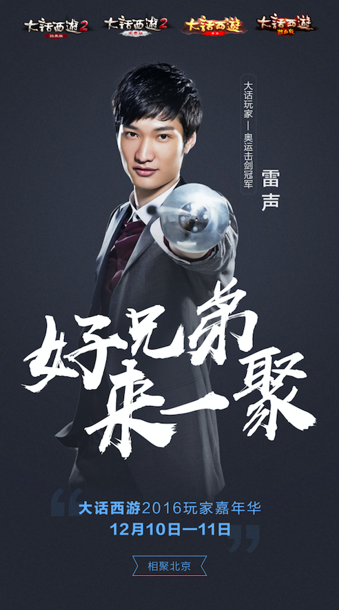 好兄弟,来一聚!12月10至12月11日,“大话西游2016玩家嘉年华”狂欢将至,在此全民欢庆之际,备受玩家关注的大话明星玩家团也首度与玩家见面!大话好兄弟胡歌领衔,“奥运击剑冠军”雷声以及“篮球巨星CBA七冠王”王仕鹏,以及多位大话游戏大咖,将与玩家、粉丝亲密互动!与此同时,嘉年华活动中玩家更可领略到真实还原的长安城,参与精彩纷呈的线下互动游戏,赢取珍稀大话周边奖励!赶快加入嘉年华狂欢,与明星、大咖一起嗨!