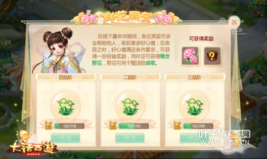 在长安城、大唐边境等五地搜寻到胡歌NPC,并为他送上“稀世鲜花”祝福,还将有机会收获高级游戏道具或召唤兽技能等珍贵游戏奖励!此外,玩家在游戏内养育鲜花,利用“好心值”更有丰厚经验奖励发放哦!
