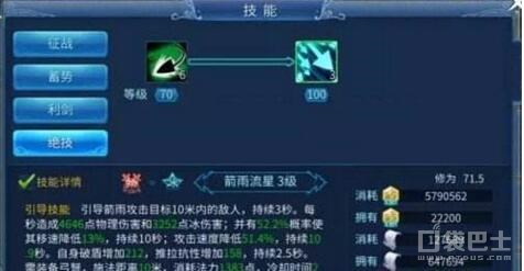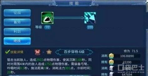 绝技尽量加高,70绝技百步穿杨伤害不是很高(这次更新加强了命中),就是先手沉默对方。100绝技箭雨流星需要持续释放,除了混分,觉得有点不太理想。