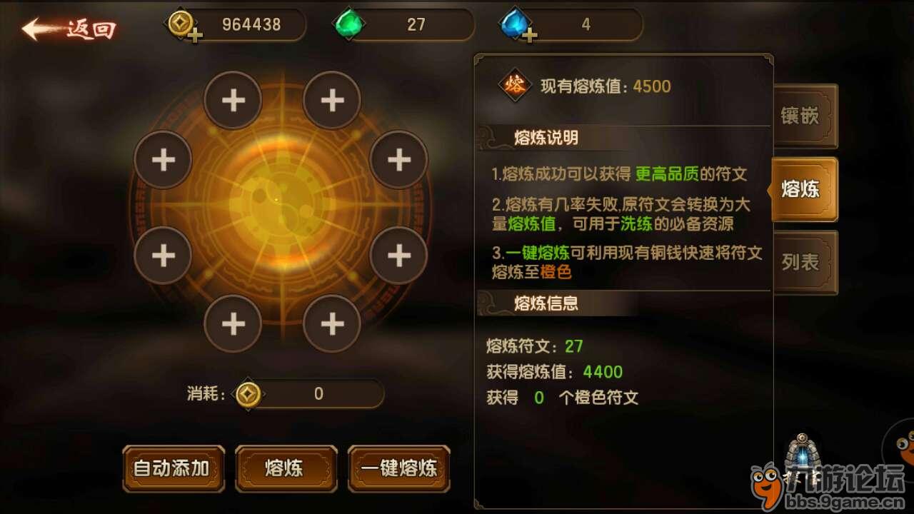 2.也可以进行熔炼,会有机会把不需要的符文熔炼成对应自身等级的橙色符文,也可以获取熔炼值。