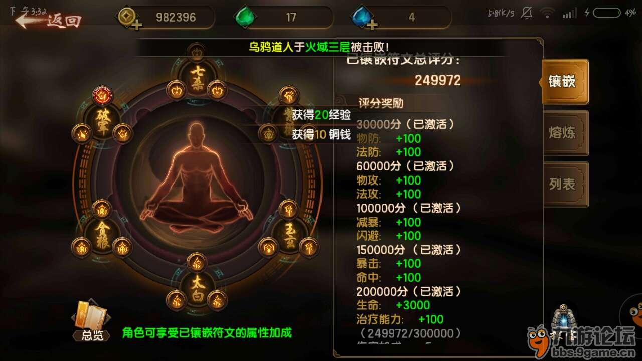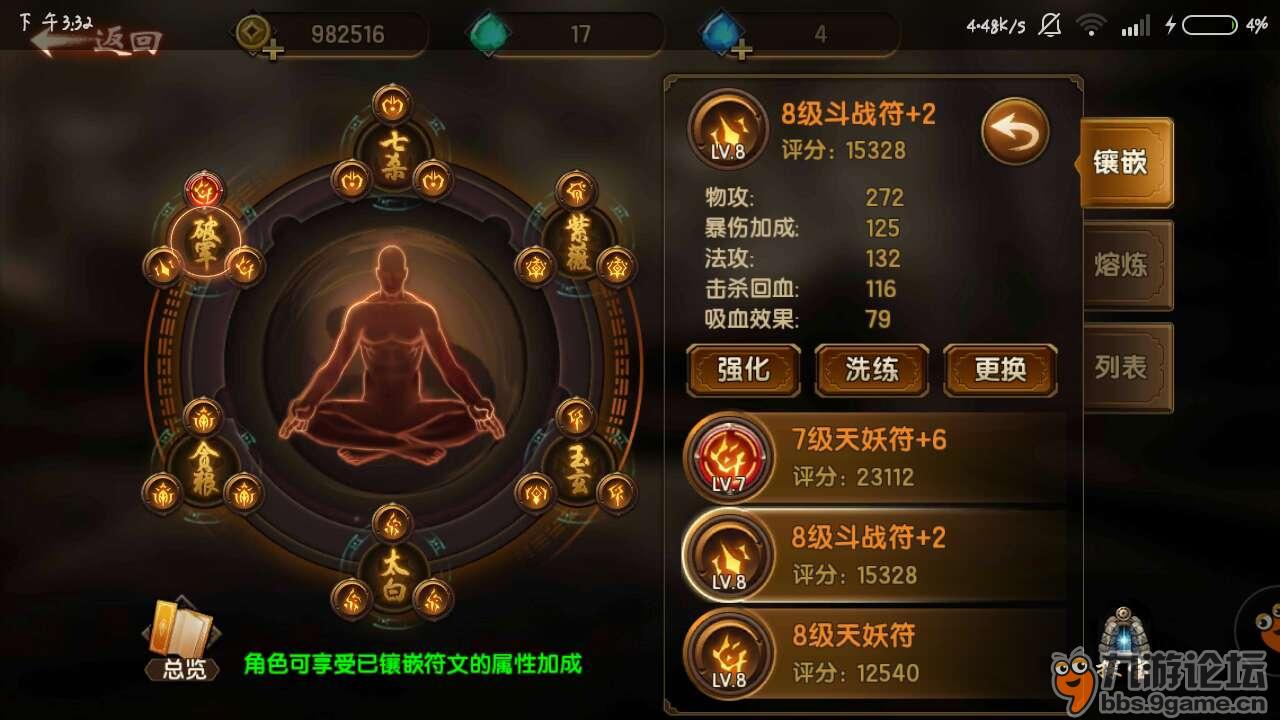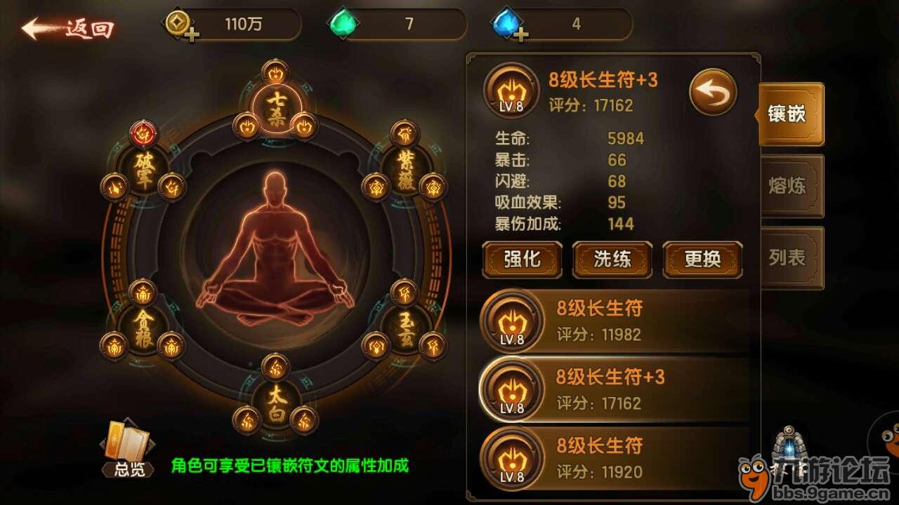 3.洗练也是个不错的选择,可以使用熔炼值和铜钱对不满意的符文进行洗练,洗出自己需要的属性。