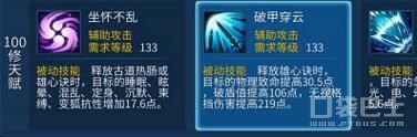 100天赋,坐怀不乱使熊心古道提高抗性的buff,剩下两个分别是加强熊心跟古道的天赋了 切换使用根据不同情况 都很强力的辅助天赋。