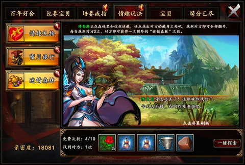 迷情的森林,想想肾上腺素就蹭蹭上升,大侠对于结婚系统的玩法总觉得有些不过瘾,这次迷情森林满足你(偷笑)