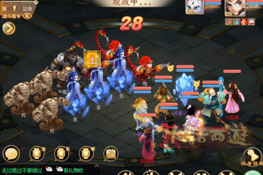 等到两个魔抽的剩3000血左右女人男仙大秒大毒带走剩余单位,这时候就要轮换了,女人看情况拉男魔蓝或者群毒,男仙看好白骨精的血,男魔在其余七个单位到地后群抽,待剩余单位也没多少血后男魔看女人和男仙蓝量,换仙,女人输出,轻松带走魔王窟中殿。