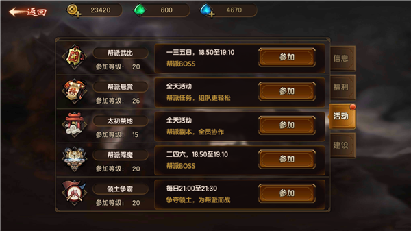 仙友们可以在帮派活动中点击参加领土争霸,目前一共有13处领土疆域待天下群雄争夺。