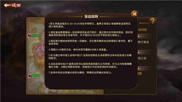诸位仙友如果对领土还存在问题也可以点击领土战界面的小问号,这里为大家提供了详细的规则介绍。