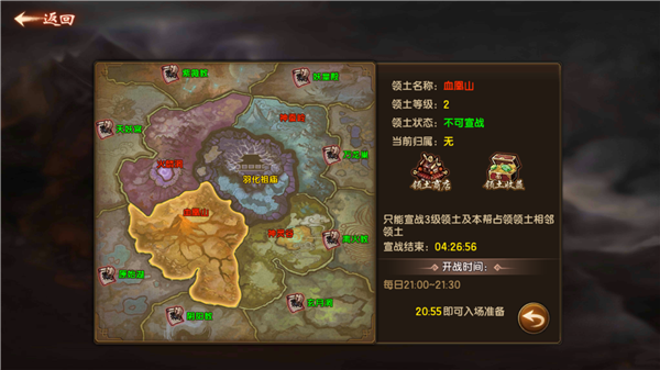 每一份领土的奖励都是不一样的哦,越靠近内圈领土的奖励越丰厚。仙友们可以点击地图进行查看,这里以血凰山为例: