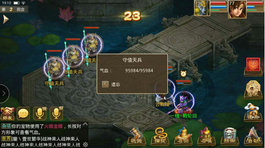 守值天兵气血10W左右,伤害5000-左右。速度550左右,1300道障碍4回合左右。建议先障碍天兵再给宠物拉刀输出。