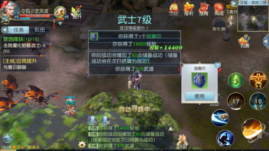 驱散禁地妖魔,获得丰厚的武道和战功奖励。
