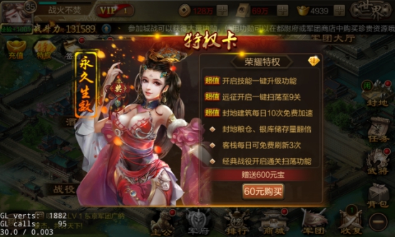 1级开放特权卡系统,激活特权卡之后,即可永久享受游戏中的荣耀特权:
