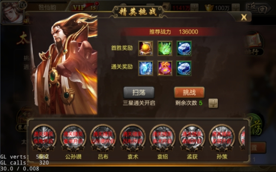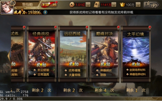 次数耗尽后可消耗元宝购买额外的挑战次数。